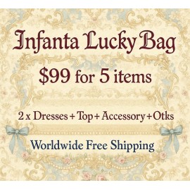 Infanta Lucky Bag $99 for 5 lolita items + FREE SHIPPING! (2 Dresses + Blouse / Top + Accessory + Otks)   Handling time is about 1 week, shipping time is about 1-2 weeks       Please read the rules before purchase!     1. 2 dresses, 1 top / blouse, 1 accessory are from l..